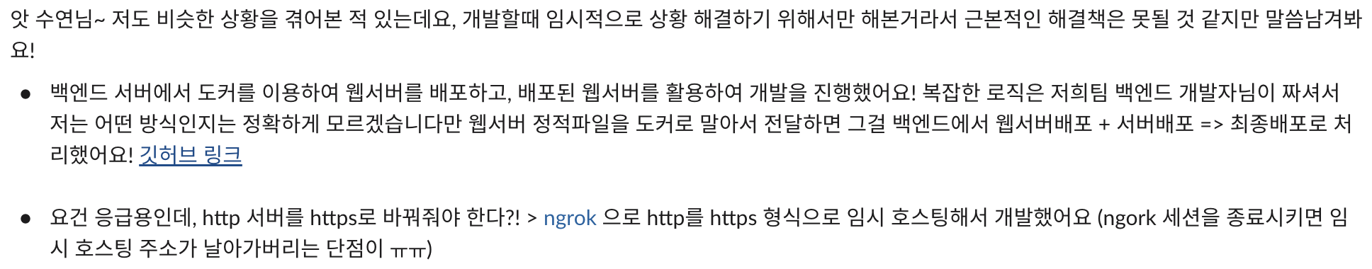 구글에 검색도 해보고... 데브코스로 알게된 프로젝트 경험이 많은 지인분께 슬쩍 해결방법을 여쭤보기도 했다.