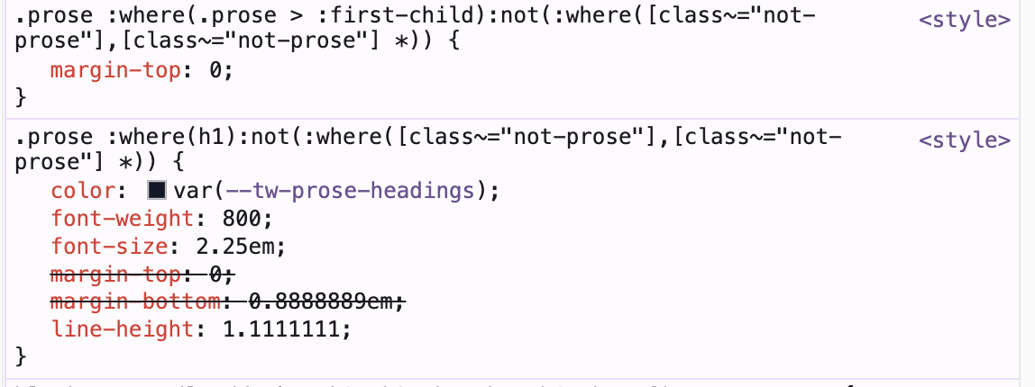 prose를 사용하면 해당 요소와 그 하위 요소들에 대해 타이포그래피 스타일을 다시 적용해준다.