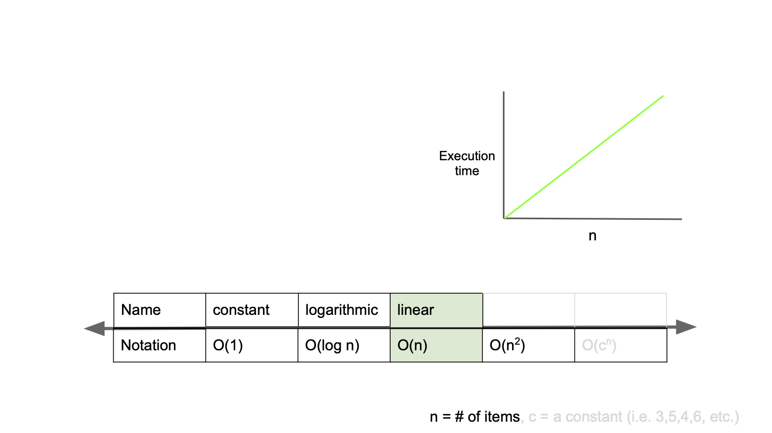 입력값이 증가함에 따라 시간 또한 같은 비율로 증가하는 것을 의미.