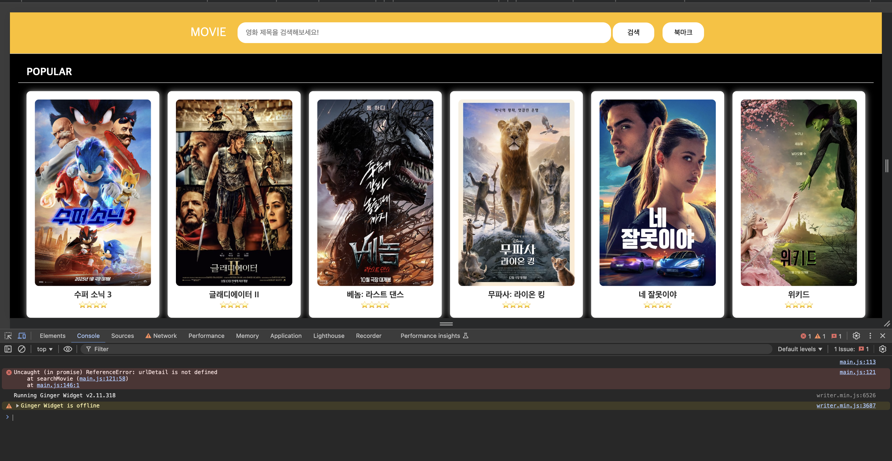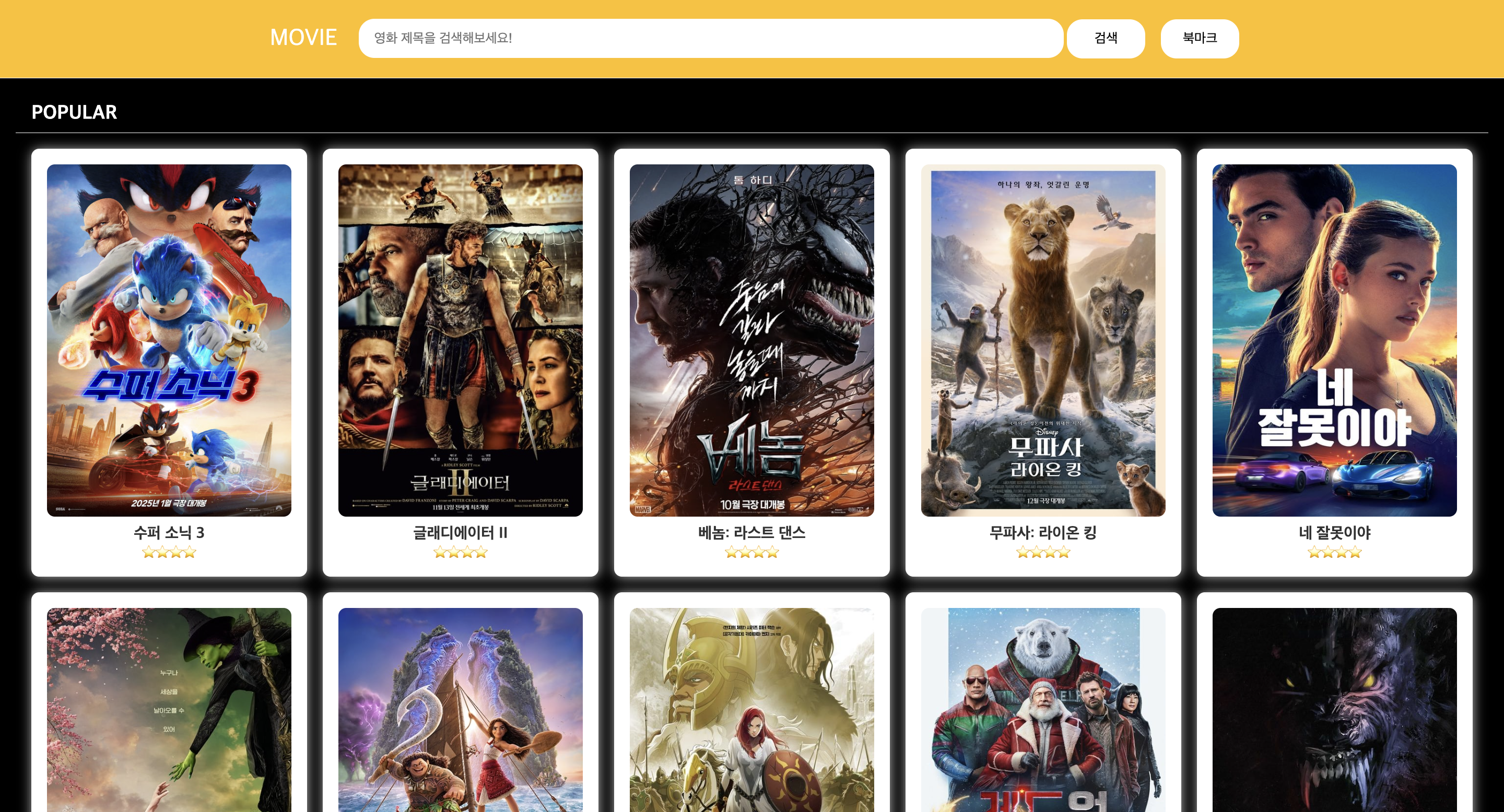 를 어찌저찌 사용하여 영화 데이터를 불러오는데 성공했다! (이 내용은 추후에 다루도록 하겠다.) 그리고 호기롭게 도전한 다음 과제, 바로 영화 검색이었다. 미리 만들어둔 input