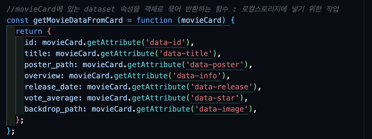 북마크 추가 함수 : 로컬스토리지에 해당 영화 데이터 저장