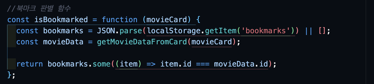 북마크 판별 함수 : 해당 영화가 로컬스토리지에 저장되었는지 판별