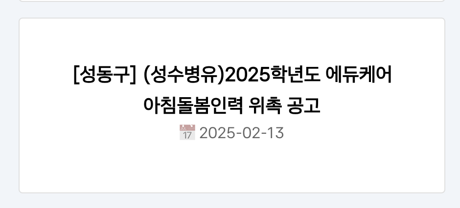 이렇게 하면 " [성동구] (성수병유)2025학년도 에듀케어 아침돌봄인력 위촉 공고" 같은 형식으로 데이터를 저장할 수 있다.