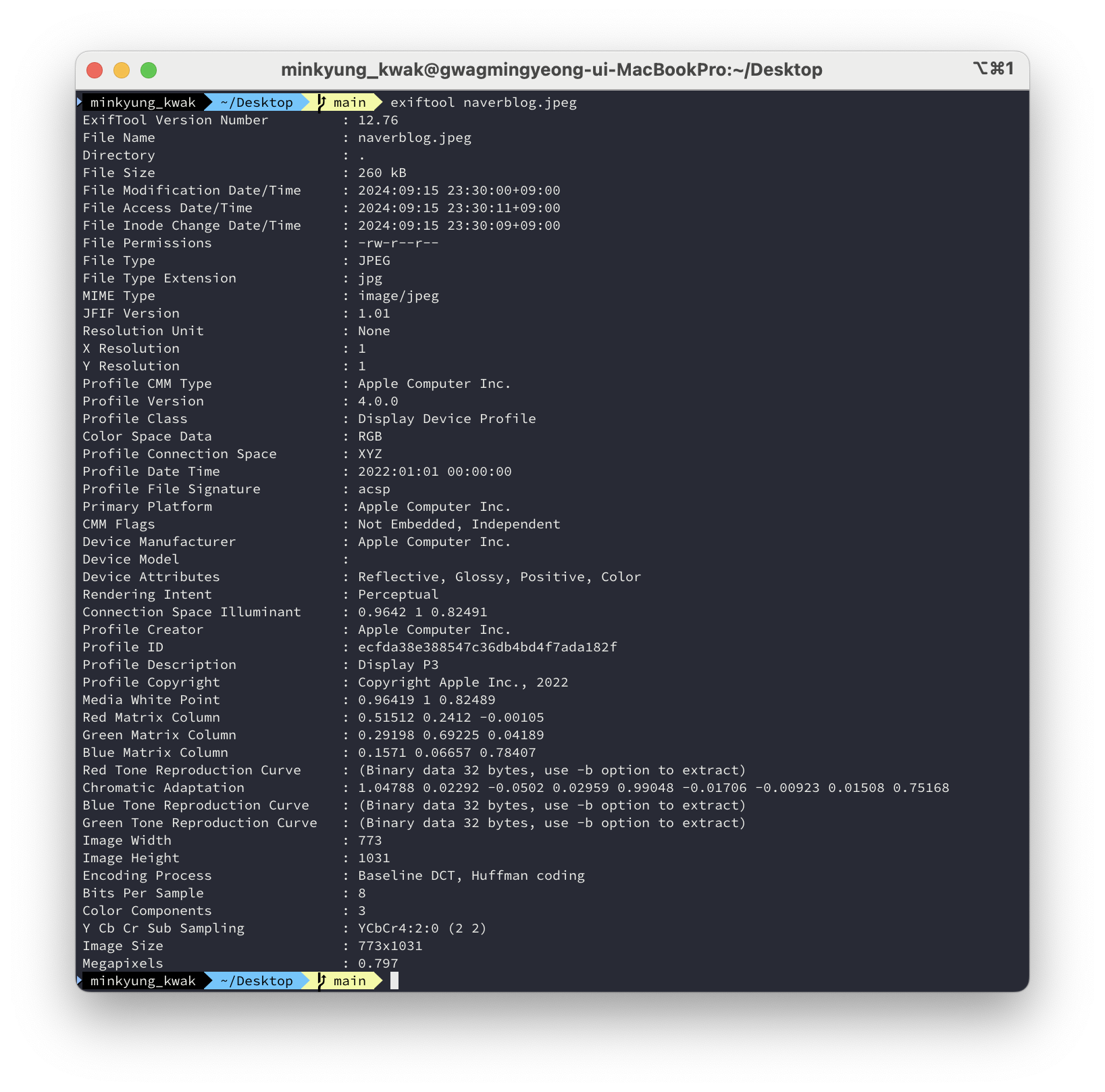 exiftool naverblog.jpg (네이버 블로그에서 다운받은 사진)