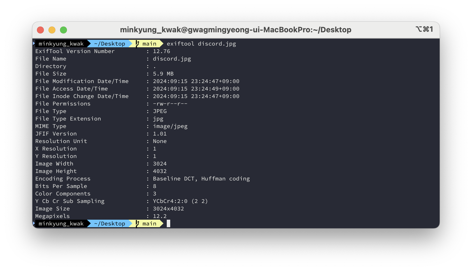 exiftool discord.jpg(디스코드에서 다운받은 이미지 파일)