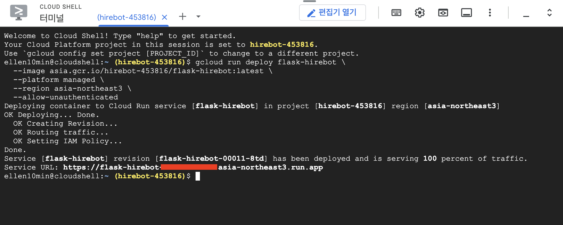 asia.gcr.io/YOUR_PROJECT_ID/flask-hirebot:latest → GCP Container Registry(GCR)에 업로드할 경로