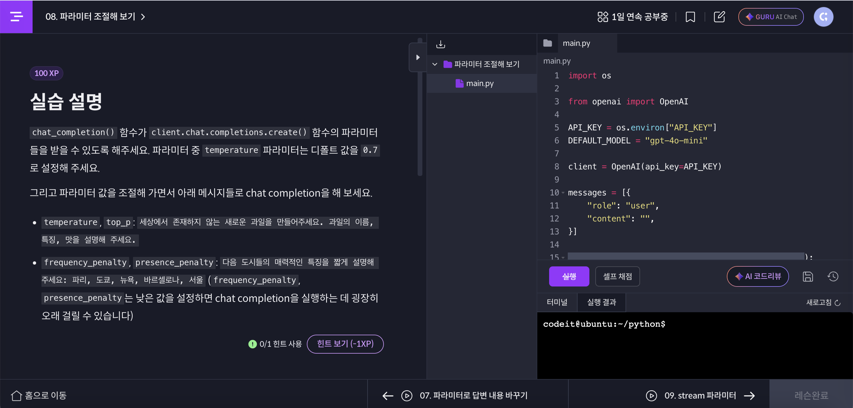 이어서 GPT API 가져오는 일도 금방 끝났다. 코드잇 만세