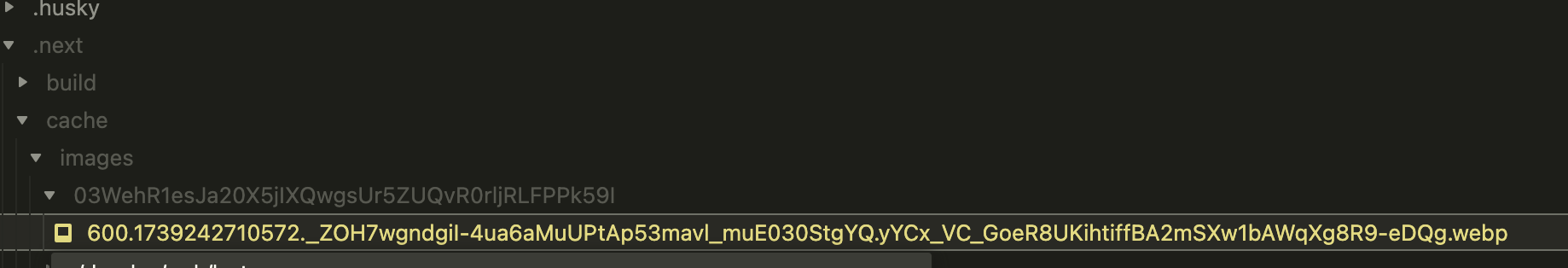 위의 경우는 프론트엔드 자체 리소스가 아닌(public/에 존재하지 않는) 이미지의 경우 해당 이미지를 다운로드 받아서 .next/cache/images에 저장하게 된다.
