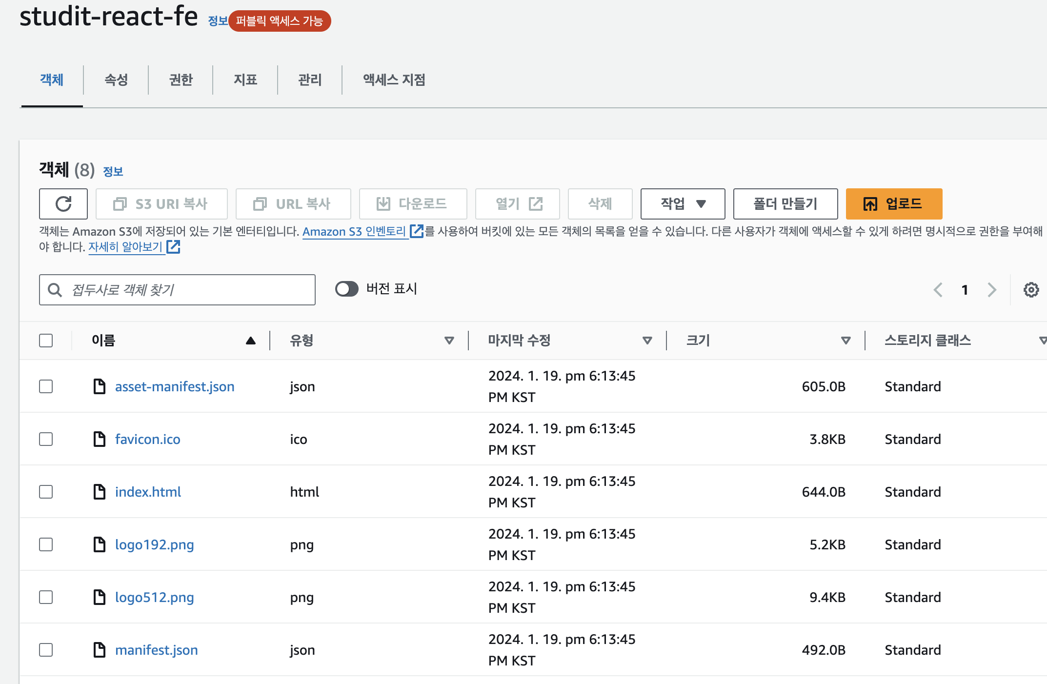 일련의 과정들이 모두 성공하면 S3로 파일이 빌드되어 업로드 된다.