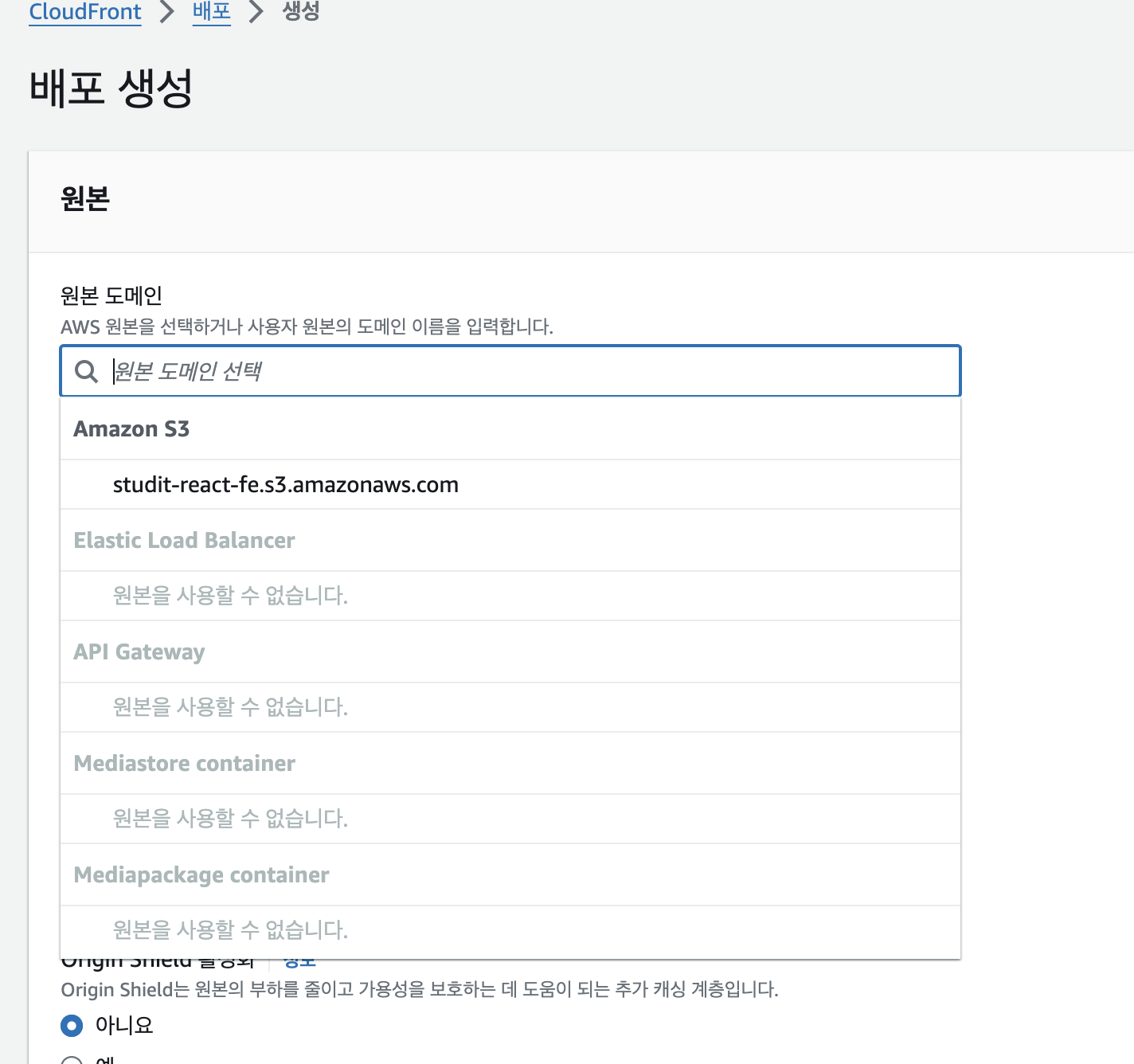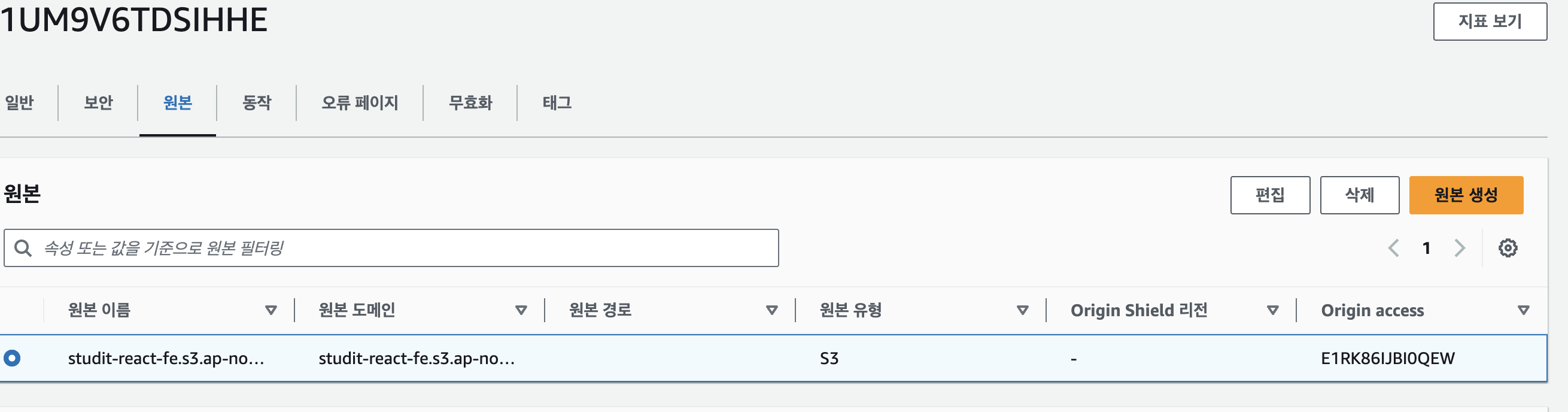 클라우드 프론트의 배포를 눌러 원본-편집을 들어간다.