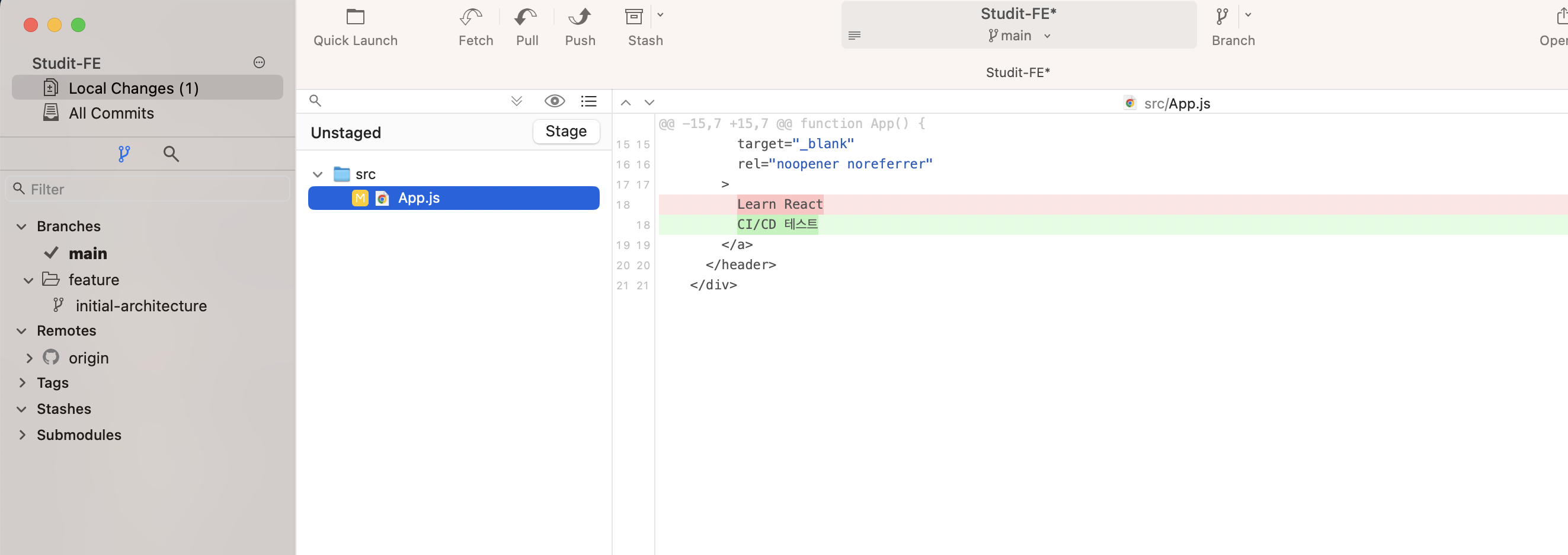 테스트를 위해 메인 브랜치에 변경을 하고 푸시를한다.