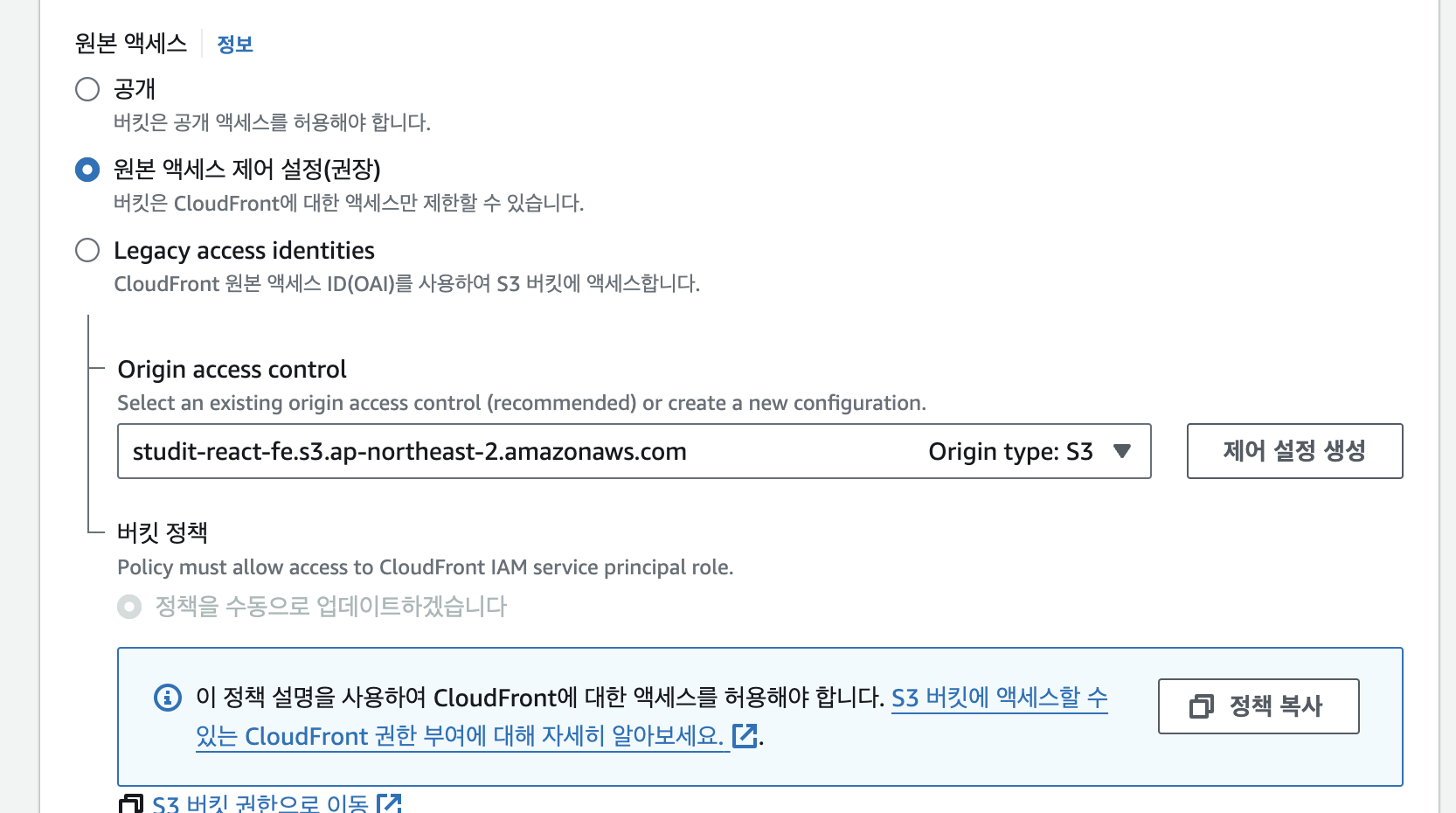 나중에 CloudFront에서 접근을 풀기 때문이다.