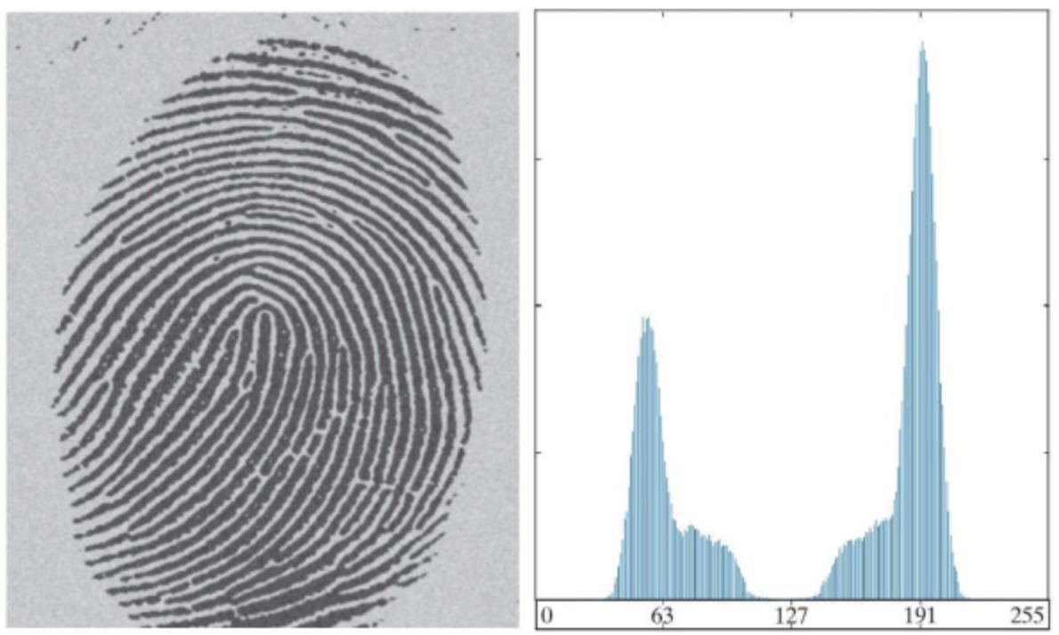 지문 사진과 사진의 히스토그램이 있다고 하자.
