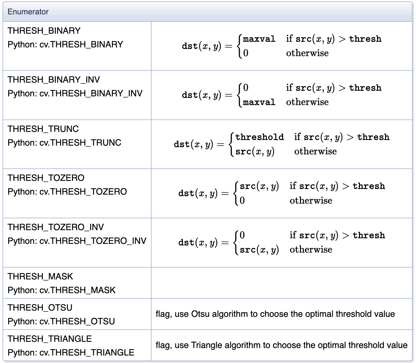 OpenCV에는 threshold()라는 함수로 이미지에 Global Threshold를 적용할 수 있다.