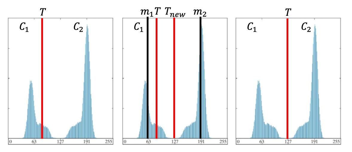그 다음 각 구간에 대한 평균과 평균에 대한 평균(2m1+m2)을 새로운 Tnew에 갱신한다.