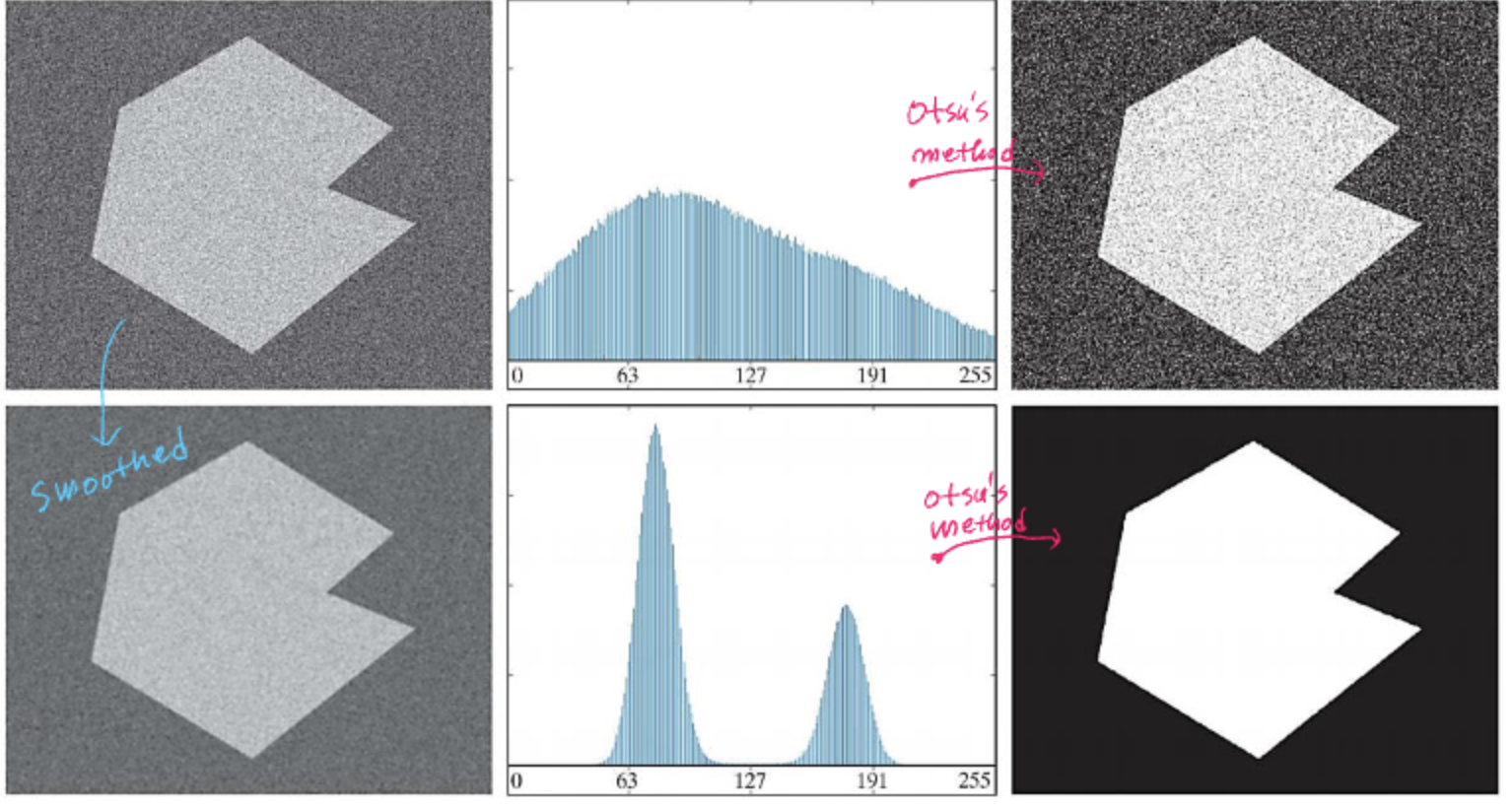 Smoothing을 진행하고 Otsu's Method를 거쳐 Segmentation을 하면 된다.