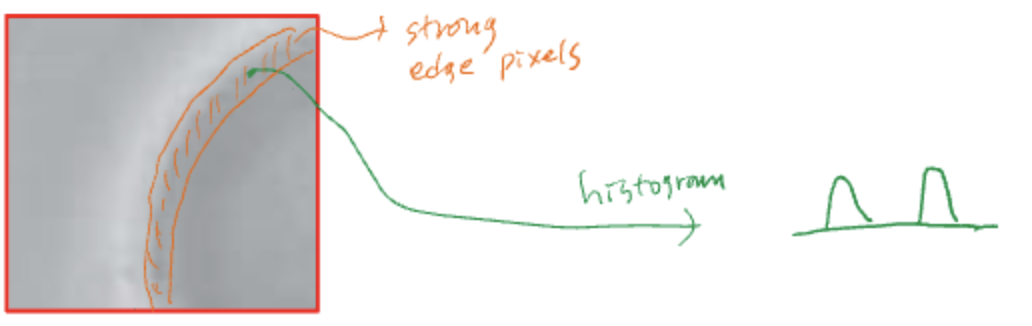 - 엣지 이미지 내에서 히스토그램을 그린다.