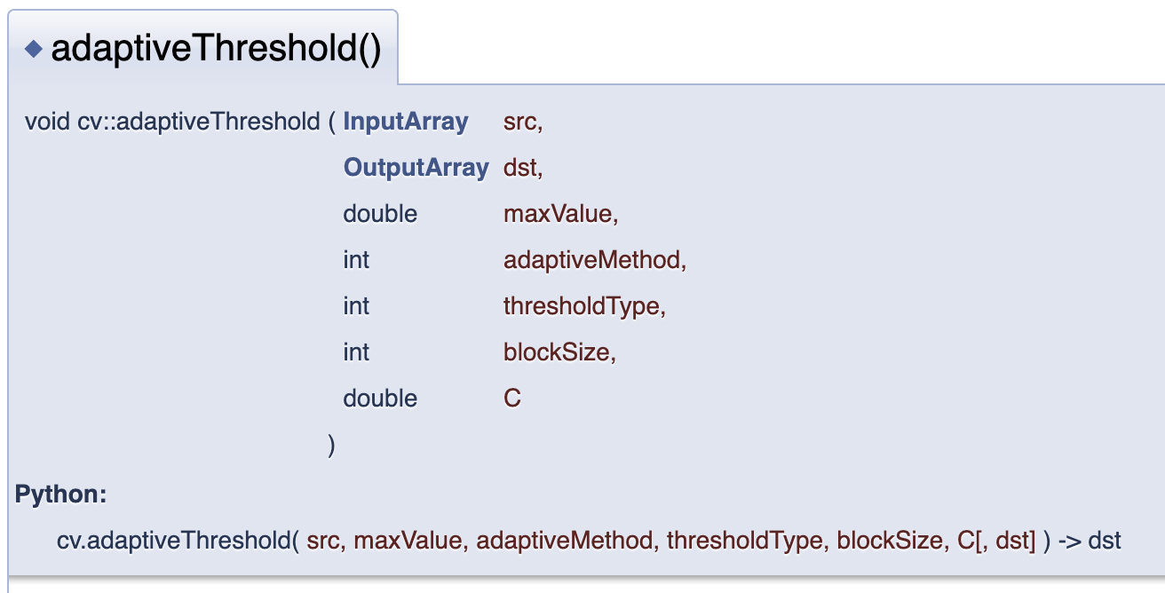 OpenCV 에서는 threshold가 local별로 다르기 때문에 적응형 임계값이라고 한다.