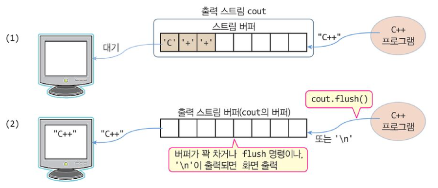 : 출력 데이터를 모아두었다가 특정 조건(endl, flush)이 충족되면 한 번에 출력한다.