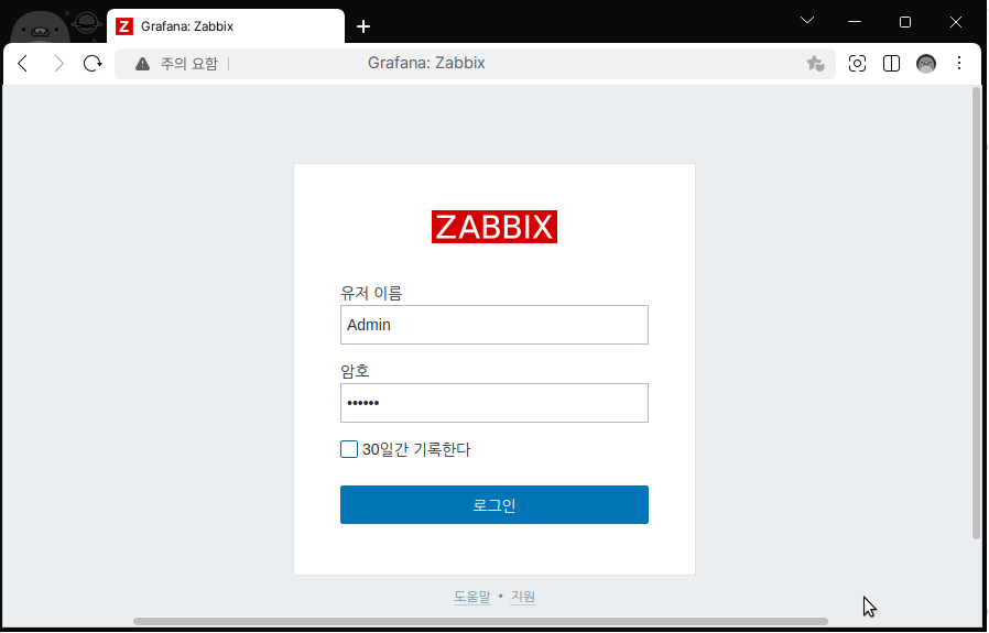 최초 접속정보: Admin / zabbix