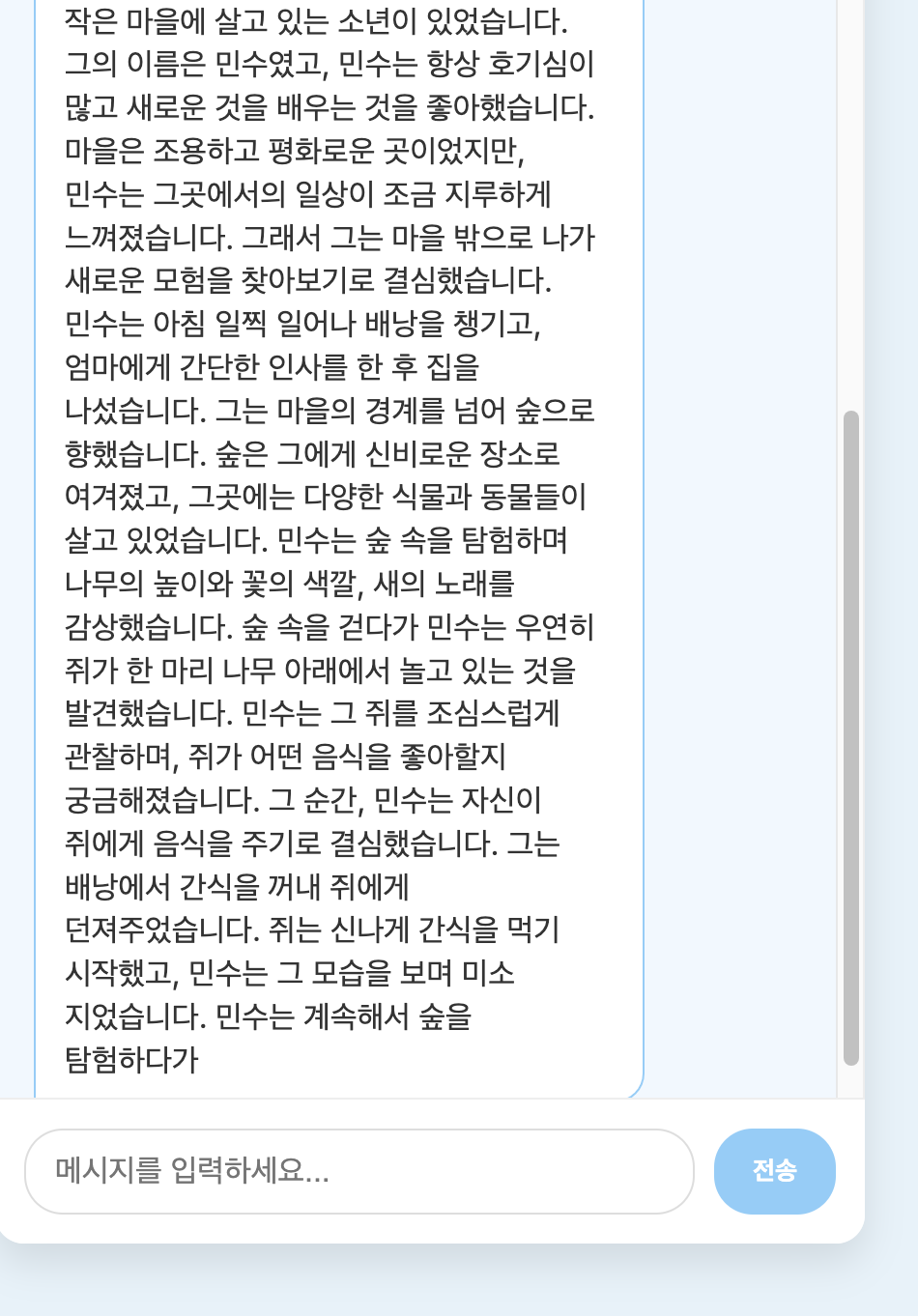 - 채팅 메세지가 출력된 후 스크롤은 부드럽게 진행하도록 구성하세요.