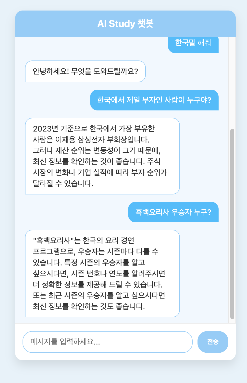 한국어 응답을 요청하니 한국어도 곧 잘 응답해준다.