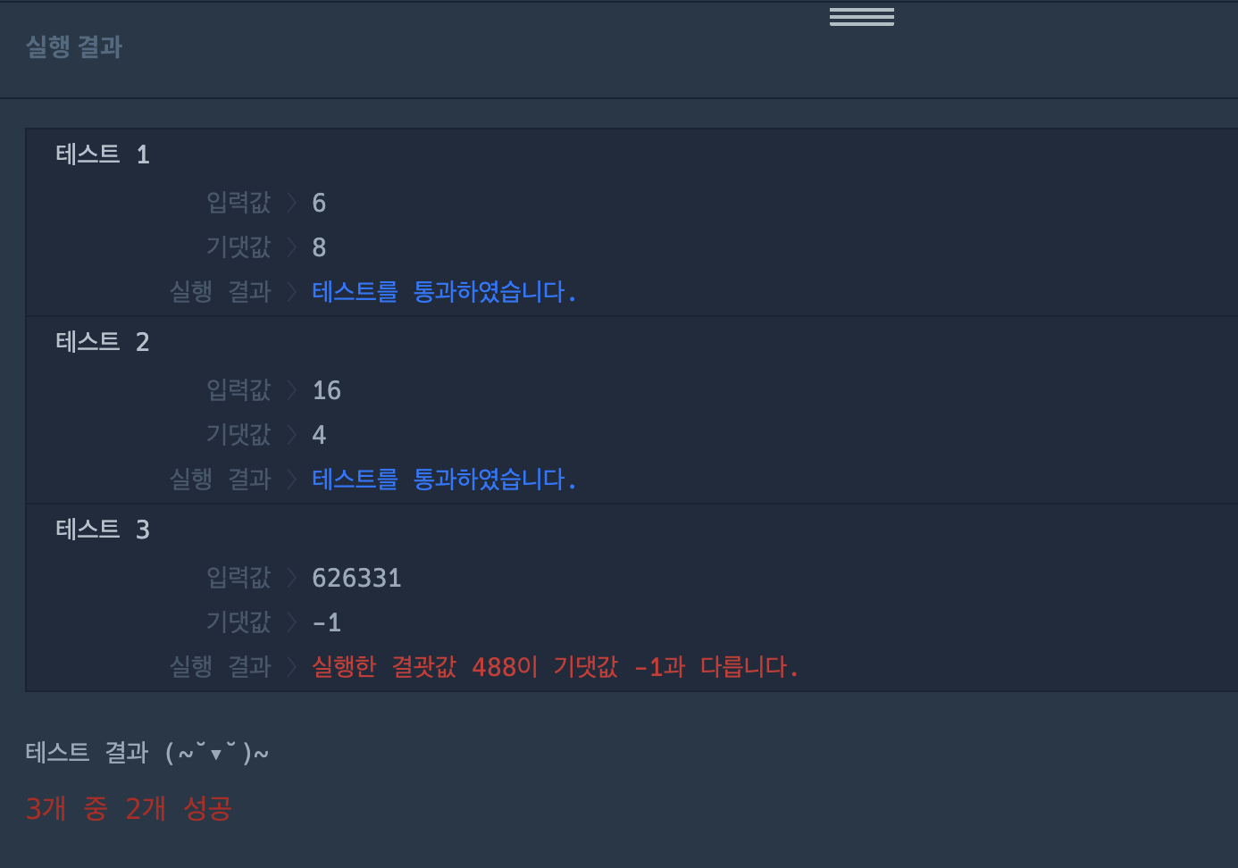 콜라츠 추측 문제를 푸는데 3번 테스트만 통과하지 못했다.