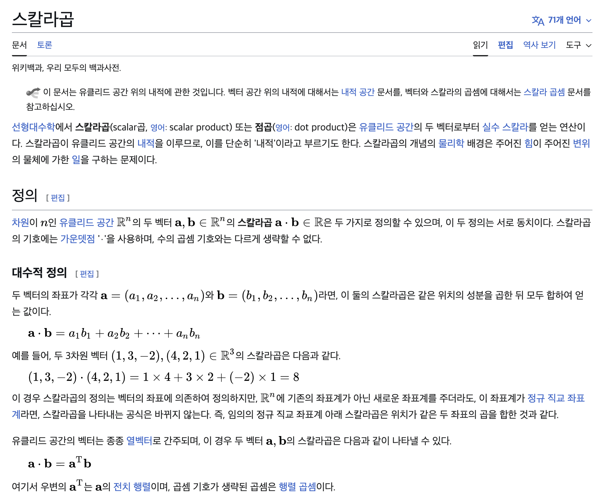 a와 b의 내적은