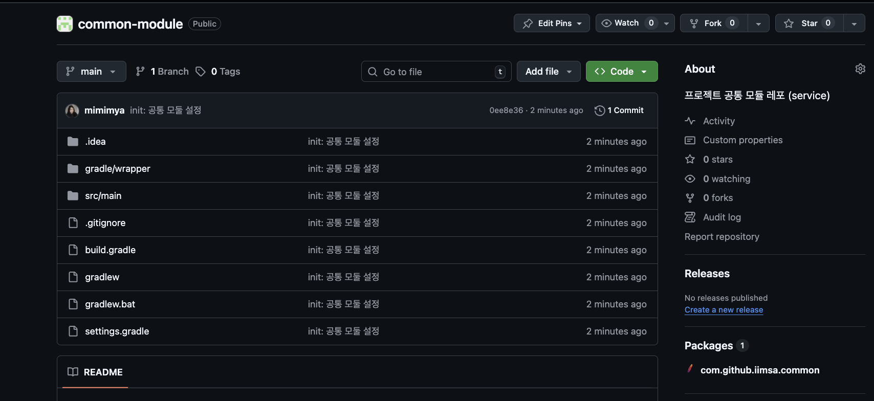 Gradle은 https://maven.pkg.github.com 이라는 주소에 가서, mimimya라는 사람의 msa-common이라는 칸에 패키지를 넣어줘"라고 인식하게 된다.