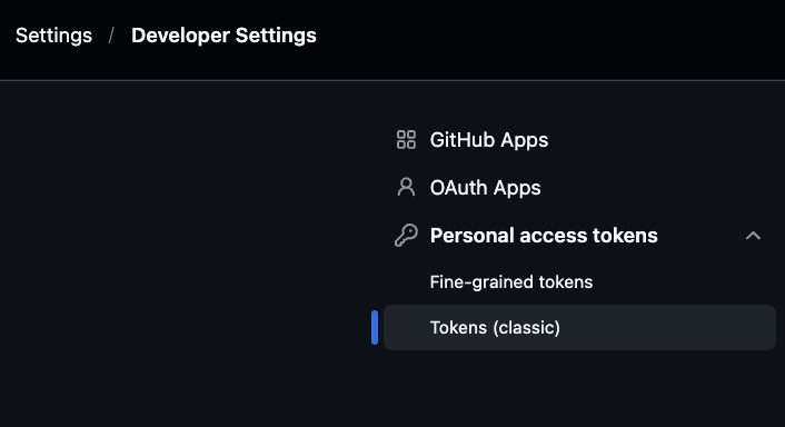 (Fine-grained personal access tokens로 발급한 토큰의 경우, GitHub Packages로 배포할 때 아직 호환성 문제가 발생할 수 있다.)