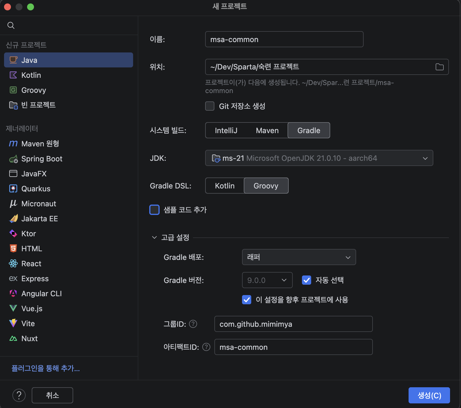 따라서 QClass를 생성하는 경로 설정(querydslDir)과 컴파일 옵션은 서비스마다 필요하다.