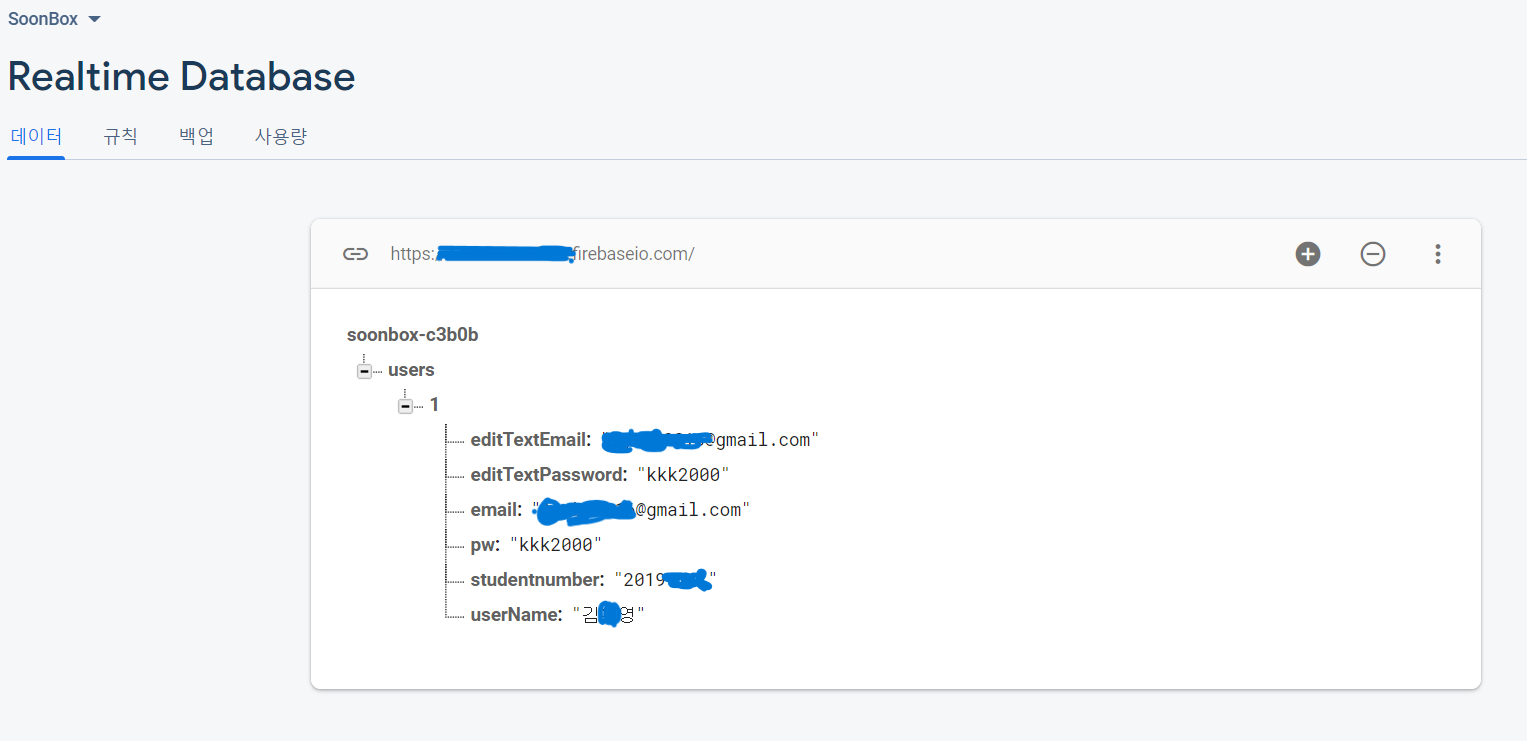 서버와 데이터베이스는 안드로이드 예제에서 자주 보인 이유로 Firebase를 사용했었다.