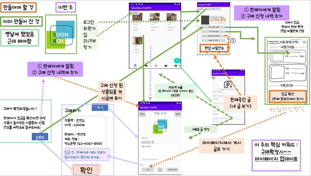 구매자가 구매한다고 했을 때 물건에 대한 대금을 입금하지 않았을 경우 물품보관함을 열 수 없도록, 판매자가 입금을 확인했을 때 구매자에게 비밀번호를 제공할 수 있도록 했다.
