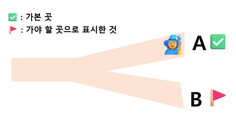 선택되지 않은 다른 길 B는 A라는 길을 갔을 때의 모든 경로를 확인한 후에 잊지 않고 가보도록 기억🚩해둘 필요가 있다.