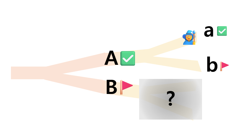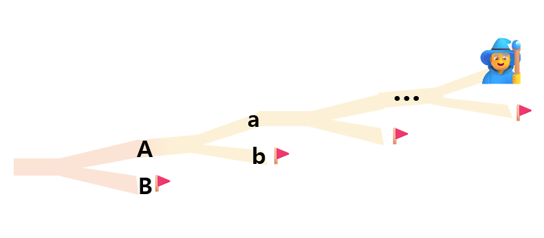등반 경로가 A로 갔을 때 다음 경로, B로 갔을 때 다음 경로로 나뉜다고 하자.
