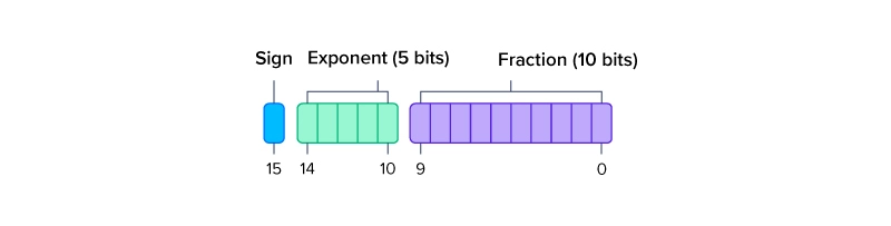 - 비트 수 : 16bit(부호 1비트 + 지수 5비트 + 가수 10비트)