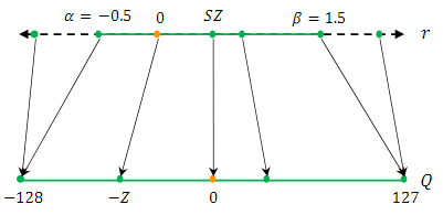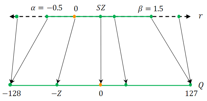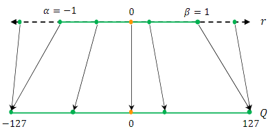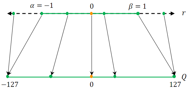 이를 위해, floating point 값을 양자화된 int값으로 mapping시켜주는 Quantizaton operator(양자화 연산자)를 정의해야 한다.