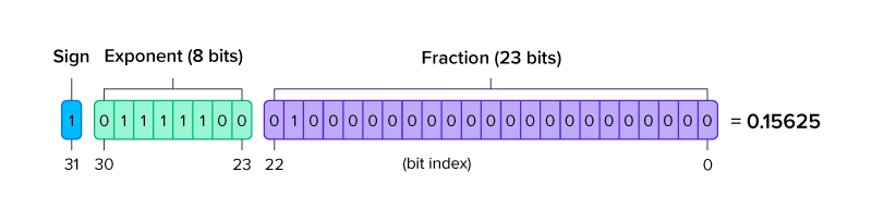 - 비트 수 : 32bit(부호 1비트 + 지수 8비트 + 가수 23비트)
