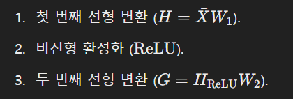 - GeLU() 비선형 활성화 함수를 사용하여 표현력 강화하고