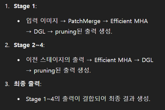 또한, 두 단계 지식 증류를 결합하여 원래 SegFormer(교사 모델)에서 동적으로 가지치기된 모델(학생 모델)로 지식을 전달한다.
