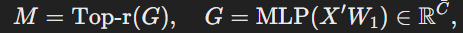 요약된 입력 X와 선형 계층 W1을 두 개의 MLP계층에 입력하여 게이트 M을 생성한다.