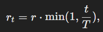 여기서 t는 현재 학습 단계이고 T는 총 학습 단계 수이다.