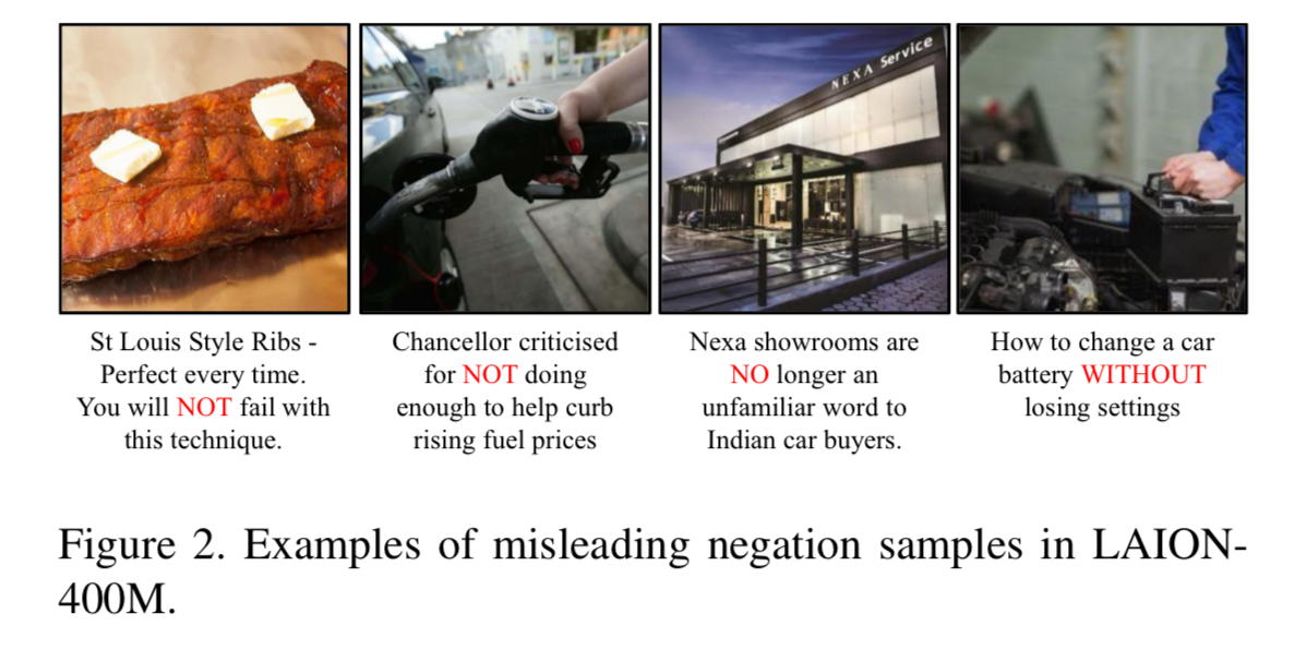 또한, Caption의 부정 표현이 있더라도 Image의 시각적인 맥락과 일치하지 않는 경우가 많아 학습할 수 있는 의미있는 정보를 제공하지 못한다.
