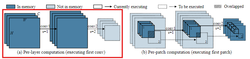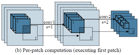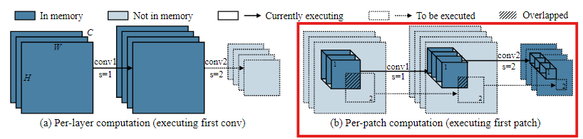 이 문제를 해결하기 위해 이 논문에서는 feature map의 작은 공간 영역에서만 작동하고 peak memory를 크게 줄이는 일반적인 패치별 추론 스케줄링을 제안한다.