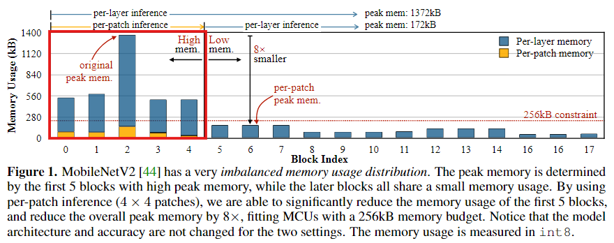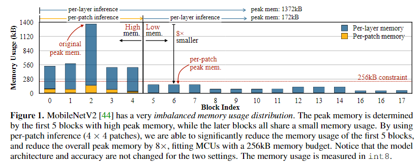 위 Figure는 MoblieNetV2의 Block당 peak memory 사용량을 제공한다.