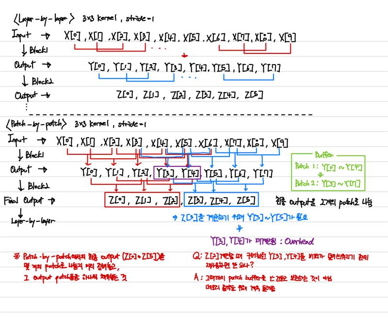 하지만, peak memory가 줄어들면 계산 오버헤드가 발생하는데, 겹치지 않는 output patch를 계산하려면 입력 image patch를 겹쳐야 하므로 계산이 반복적으로 이루어지게 된다.