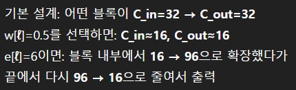 - MB1 1x1에서 1은 블록 내부에서 채널 C를 1 x C로 유지하여 1x1 conv를 수행한다는 뜻