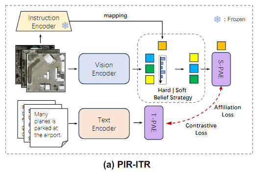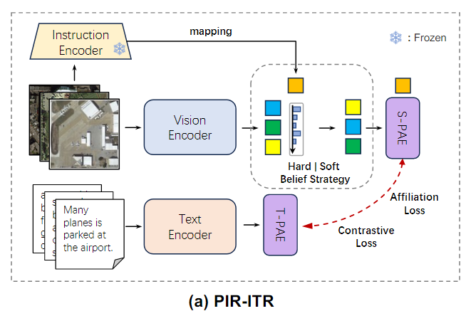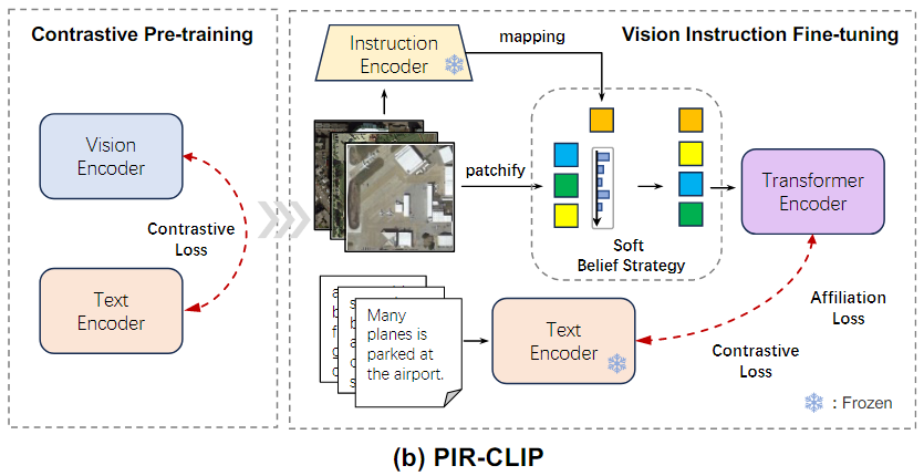 PIR-CLIP은 CLIP 모델을 기반으로하여 PIR 학습을 적용해 Remote sensing image-text retrieval 성능을 개선한 방법이다.