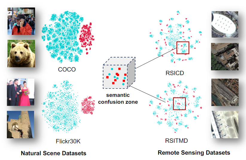 그러나, Remote sensing 이미지는 작은 object나 배경이나 관련 없는 object로 인해 Semantic noise에 취약하며, visual 및 text representation에 편향을 일으켜 검색 성능을 저하시킨다.