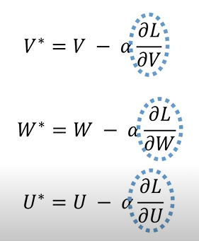 U, W, V가중치들을 업데이트하면 학습이 이루어진다.